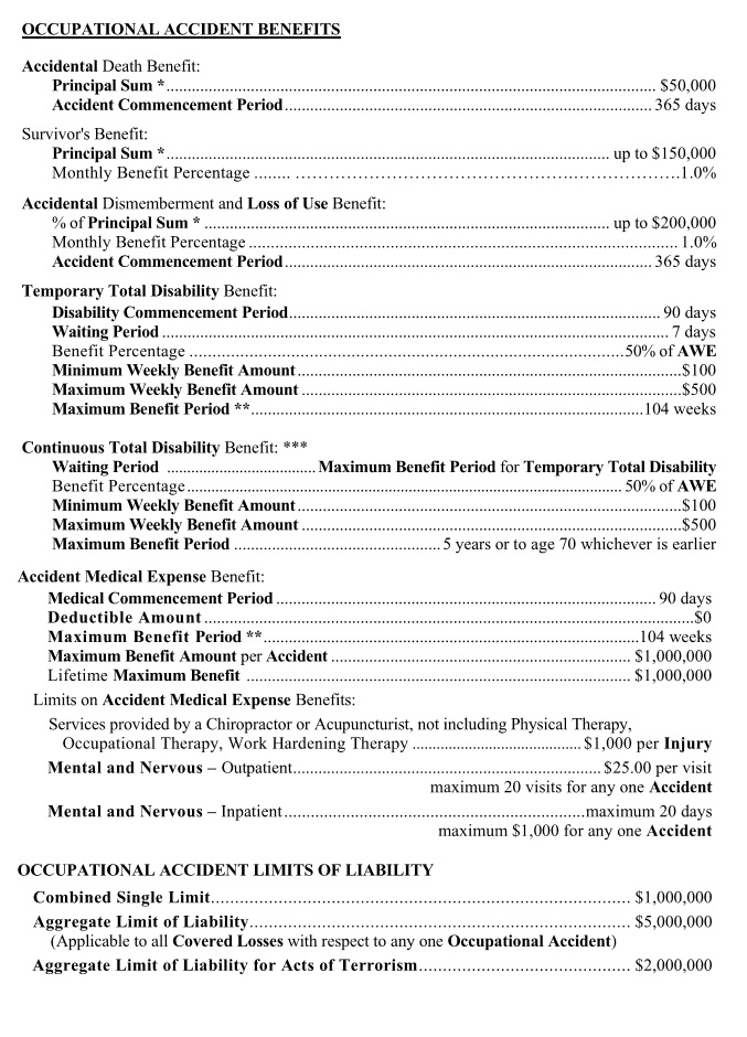 The truth of what that means, however, is a bit more nuanced. Below is an excerpt from the Uber Occupational Injury Protection Policy itself. This document lists the “benefits” available from the plan.